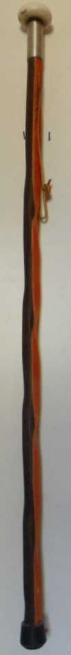 This Cane is made from Merbau with orange Birch laminated to 2 sides and has swirl design carved into the stick. The handle is made from an antique porcelain door handle. It is 37 inches long. It has a Natural finish on it. Features: * Non-Skid Rubber Tip! * Water Resistant Finish! * Cut to Length! * Complimentary Wrist Strip.
