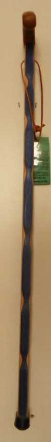 This Cane is made from a Natural Birch core with blue color Birch laminated to 2 sides.The handle is made from Brown Maple. It is 35.5 inches long. It has a Natural finish on it. Features: * Non-Skid Rubber Tip! * Water Resistant Finish! * Cut to Length! * Complimentary Wrist Strip.